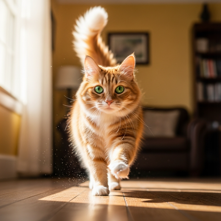 이러한 꼬리 움직임은 고양이가 안정감을 느끼고 당신과의 관계에 만족하고 있다는 신호이기도 합니다. 녀석은 당신을 안전하고 편안한 존재로 인식하며, 함께 있을 때 행복감을 느낀다는 것을 꼬리를 통해 보여주는 것입니다. 만약 당신이 돌아왔을 때 고양이가 이런 모습으로 다가온다면, 따뜻한 쓰다듬이나 부드러운 목소리로 화답해주는 것이 좋습니다.