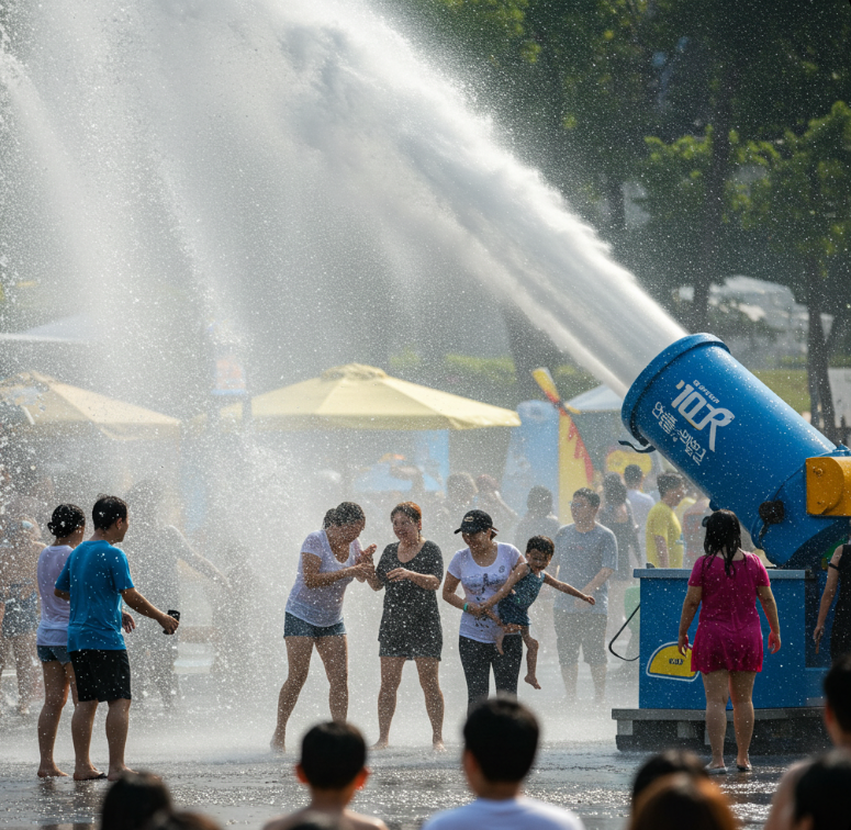 거대한 물줄기가 관객들을 향해 뿜어져 나오며, 무더위를 단번에 날려버리는 짜릿한 경험을 선사해요.